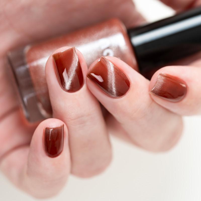 Нежный коричнево-бежевый лак с серебристым магнитным бликом. Гид в Прошлое - это точно не машина времени. Для нас это возможность заглянуть заново в свои воспоминания, прожить и понять их, не меняя хода истории. А главным вопросом на подумать мы оставим: как те же самые события воспринимались нашими близкими?