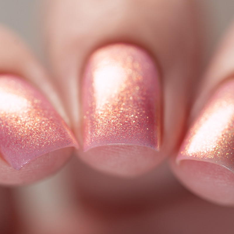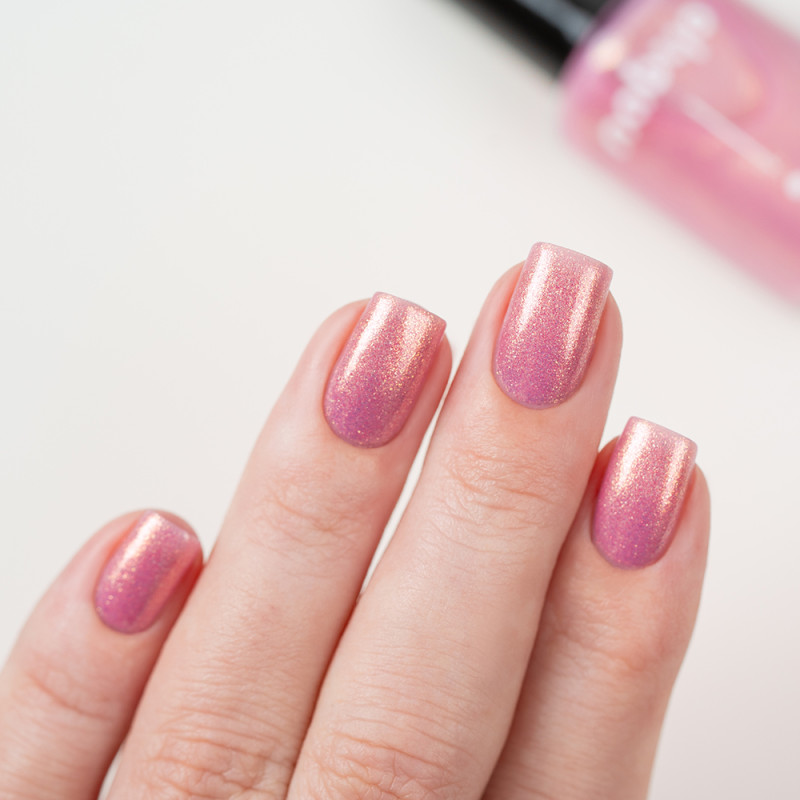 Нежно-розовый полупрозрачный лак с крупным красно-золотистым шиммером аврора. Глорию можно заметить на облаках, расположенных прямо напротив источника света. Говорят, что увидеть ее - к просветлению. Этот лак как тот самый знак свыше, который ты давно искала.